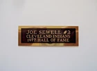 THIS PURCHASE IS FOR THE NAMEPLATE ONLY !!!!!!! BOBBY'S HANG-UPS PREMIUM QUALITY ACRYLIC DISPLAY CASES AND CUSTOM ENGRAVED NAMEPLATES SINCE 1999 THESE NAMEPLATES ARE GREAT FOR DISPLAY CASES, FRAMED AND MATTED PHOTOS AND JERSEYS, SHADOW BOXES, PLAQUES, ETC. WE SPECIALIZE IN CUSTOM ORDERS OF ALL NAMEPLATES. WHETHER IT'S FOOTBALL, BASEBALL, BASKETBALL, HOCKEY, GOLF, BOXING OR ANY PERSONALIZED NAMEPLATE THAT YOU MAY NEED. WE CAN MAKE JUST ABOUT ANY NAMEPLATE THAT YOU ARE LOOKING FOR. PLEASE LIMIT THE AMOUNT OF TEXT TO 3 LINES ON THIS SIZE NAMEPLATE. OUR NAMEPLATES ARE TRIPLE ENGRAVED TO GUARANTEE CRISP, READABLE TEXT. NAMEPLATES ARE HAND POLISHED BEFORE SHIPPED TO MAKE SURE THE ENGRAVING REALLY STANDS OUT. ALL NAMEPLATES HAVE HIGH QUALITY DOUBLE SIDED TAPE TO ENSURE IT WILL STAY IN PLACE. CLICK HERE AND GO VISIT OUR EBAY STORE FOR MORE GREAT ACRYLIC DISPLAY CASES AND ENGRAVED NAMEPLATES !!!! PLEASE CHECK OUT OUR EBAY STORE, AND CHECK OUT ALL OF OUR ACRYLIC DISPLAY CASES AND NAMEPLATES. IF YOU DON'T SEE THE NAMEPLATE YOU ARE LOOKING FOR OR IF YOU ARE LOOKING TO PLACE A CUSTOM ORDER, PLEASE FEEL FREE TO EMAIL US AND WE WILL GET WORKING ON YOUR ORDER RIGHT AWAY. THANK YOU! THIS PURCHASE IS FOR A JOE SEWELL NAMEPLATE. IT IS BLACK ON BRASS BACKED ON POLISHED GOLD PLATING. THE NAMEPLATE MEASURES APPROX 1"x 3" IN TOTAL WITH ENGRAVED TEXT THAT READS: JOE SEWELL #2 CLEVELAND INDIANS 1977 HALL OF FAME IF YOU ARE PURCHASING DIFFERENT TEAM OR PLAYER NAMEPLATES, AND DIFFERENT SIZES AT THE SAME TIME, PLEASE USE THE SHOPPING CART FEATURE, AND PLEASE REQUEST A TOTAL BEFORE MAKING PAYMENT TO ENSURE YOU GET THE PROPER COMBINED SHIPPING DISCOUNT. Be sure to add me to your favorites list !