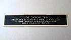 THIS PURCHASE IS FOR THE NAMEPLATE ONLY !!!!!!! BOBBY'S HANG-UPS PREMIUM QUALITY ACRYLIC DISPLAY CASES AND CUSTOM ENGRAVED NAMEPLATES SINCE 1999 THESE NAMEPLATES ARE GREAT FOR DISPLAY CASES, FRAMED AND MATTED PHOTOS AND JERSEYS, SHADOW BOXES, PLAQUES, ETC. WE SPECIALIZE IN CUSTOM ORDERS OF ALL NAMEPLATES. WHETHER IT'S FOOTBALL, BASEBALL, BASKETBALL, HOCKEY, GOLF, BOXING OR ANY PERSONALIZED NAMEPLATE THAT YOU MAY NEED. WE CAN MAKE JUST ABOUT ANY NAMEPLATE THAT YOU ARE LOOKING FOR. OUR NAMEPLATES ARE TRIPLE ENGRAVED TO GUARANTEE CRISP, READABLE TEXT. NAMEPLATES ARE HAND POLISHED BEFORE SHIPPED TO MAKE SURE THE ENGRAVING REALLY STANDS OUT. ALL NAMEPLATES HAVE HIGH QUALITY DOUBLE SIDED TAPE TO ENSURE IT WILL STAY IN PLACE. CLICK HERE AND GO VISIT OUR EBAY STORE FOR MORE GREAT ACRYLIC DISPLAY CASES AND NAMEPLATES !!!! PLEASE CHECK OUT OUR EBAY STORE, AND CHECK OUT ALL OF OUR ACRYLIC DISPLAY CASES AND NAMEPLATES. IF YOU DON'T SEE THE NAMEPLATE YOU ARE LOOKING FOR OR IF YOU ARE LOOKING TO PLACE A CUSTOM ORDER, PLEASE FEEL FREE TO EMAIL US AND WE WILL GET WORKING ON YOUR ORDER RIGHT AWAY. THANK YOU! THIS PURCHASE IS FOR A JOE TORRE NAMEPLATE. IT IS BLACK ON BRASS BACKED ON POLISHED GOLD PLATING. THE NAMEPLATE MEASURES APPROX 1.25" X 6" IN TOTAL WITH ENGRAVED TEXT THAT READS: JOE TORRE #6 MANAGER ~ NEW YORK YANKEES 4 TIME WORLD SERIES CHAMPION 2014 HALL OF FAME IF YOU ARE PURCHASING DIFFERENT TEAM OR PLAYER NAMEPLATES, AND DIFFERENT SIZES AT THE SAME TIME, PLEASE USE THE SHOPPING CART FEATURE AND PLEASE REQUEST A TOTAL BEFORE MAKING PAYMENT TO ENSURE YOU GET THE PROPER COMBINED SHIPPING DISCOUNT. Be sure to add me to your favorites list !