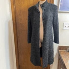 John Caruana Grey Mohair Jacket Size 12 Has pockets Shell 70% Acrylic 18% Mohair 12% Polyester Lining 100% Acetate Made in USA Dry clean only Great Condition See photos for measurements Boxed