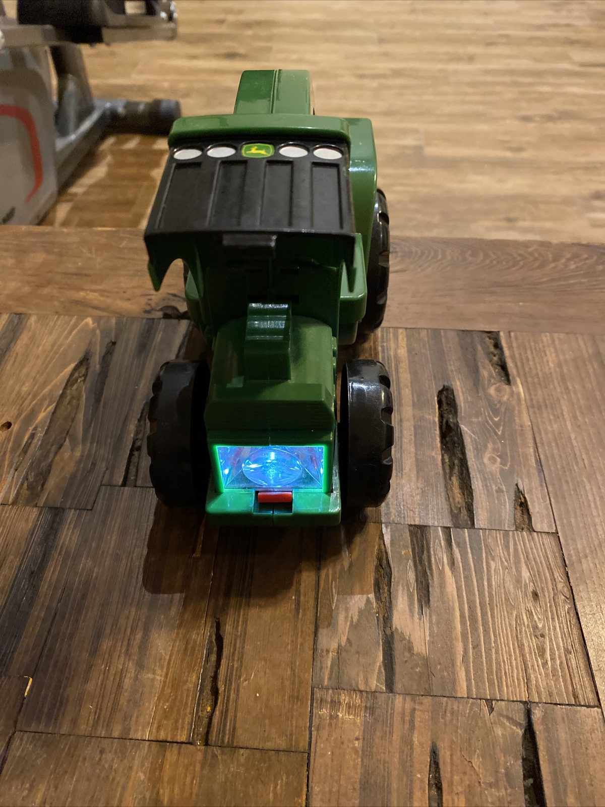 This John Deere Tractor Flashlight by Tomy International is a must-have for any young boy or girl who loves tractors. With its realistic design and sound effects, this toy is sure to provide hours of entertainment. The flashlight features a bright light that illuminates the tractor's interior and a button that plays a fun sound effect. Perfect for collectors or kids, this John Deere Tractor Flashlight is a great addition to any toy collection. Its compact size and durable construction make it perfect for playtime or display. So, whether you're a fan of tractors or just looking for a unique toy, this John Deere Tractor Flashlight is sure to delight.