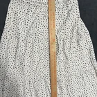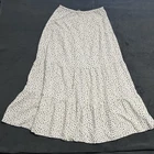 The John Galt Maxi Skirt is a stylish piece perfect for a bohemian or hippie-inspired look. Featuring a tiered allover floral pattern in cream and black, this medium-sized skirt has a tie waist closure and is made of lightweight viscose material. With a long maxi length and a bohemian theme, this skirt is a versatile addition to any woman's wardrobe. The beige color and western-inspired accents make it a standout piece that can be easily styled for various occasions. Preowned excellent condition
