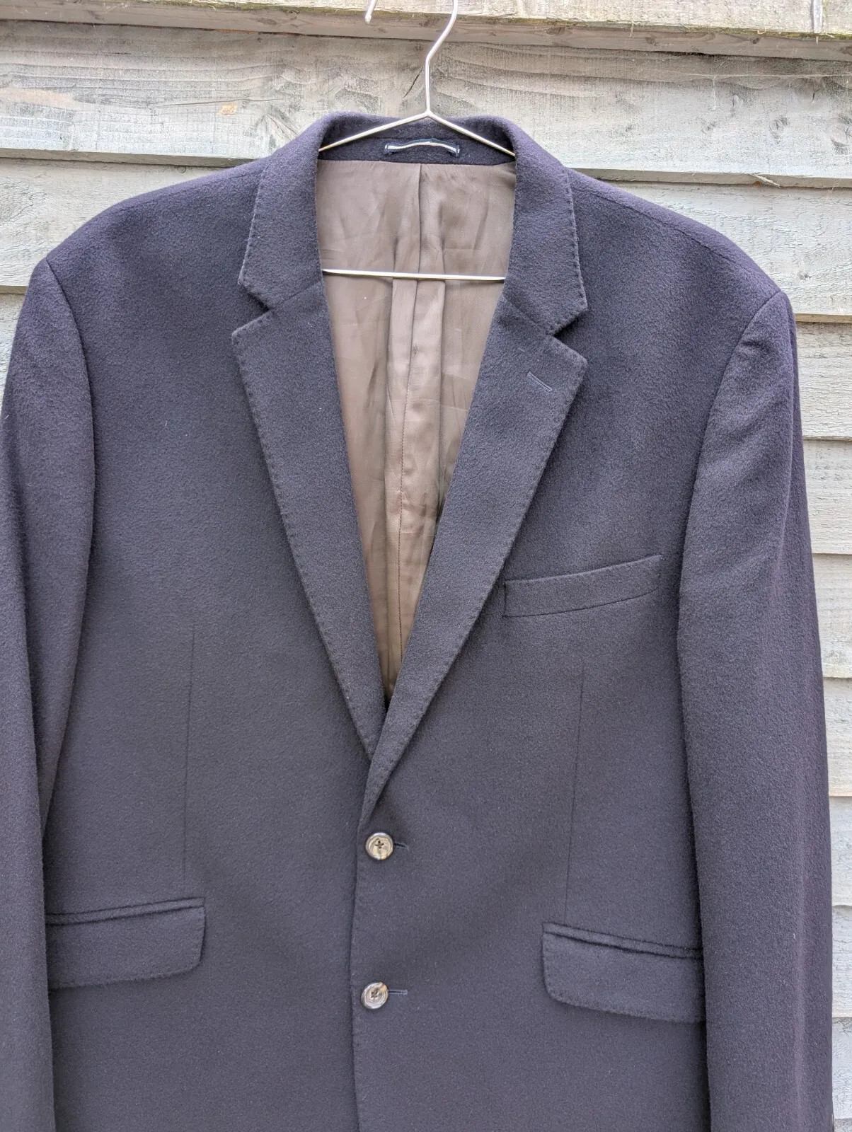 John Lewis Pure Cashmere Blazer Jacket Navy Blue Single Breasted 2-Button 100% Cashmere Mens Size 44" Chest Regular - Tailored Fit In excellent preloved condition