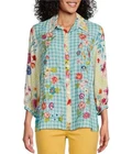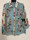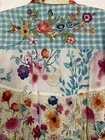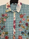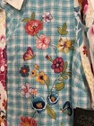 From John Mark, this shirt features: Plaid embroidered woven fabrication Point collar 3/4 sleeves with a band cuffs Floral garden embroidery motif Hi-low curved hemline Button-front closure Approx. 28" front length; 29" back length Self: linen; print: rayon/viscose Machine wash/tumble dry Chest 49” New with tags attached Retail $139