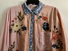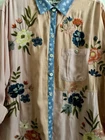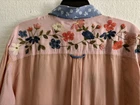Mixed media fabrics Embroidered floral pattern Collared Long sleeve with roll tab Button front Side slits New with tags attached Chest 48” Length from shoulder 29.5”