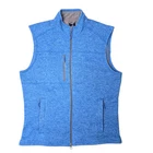 This is a Johnnie-O men's fleece vest jacket in size medium, featuring a double zip closure and a stand-up collar. The jacket is made of polyester fleece material in a heatheted tide bright light blue color with gray trim details. It is lightweight and suitable for various occasions like travel, parties, workwear, or casual outings. The vest includes several zipper pockets for convenience and is ideal for outdoor activities like walking, golf, hiking, and running. The measurements are 21" front chest and 26" length. Pre loved in excellent like new condition. *Quick Shipping *Accepting Reasonable Offers
