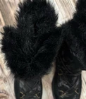 JOHNNY WAS || Freja Moon Embroidered Suede Moon Faux Fur Boots in Black - SZ 7 JOHNNY WAS || Freja Moon Embroidered Suede Faux Fur Boots in Black - SZ 7 Stay warm and elegant with the Freja Moon Boots. Suede boots add a soft texture to outfits, while the closure system adds originality. Comfortable and chic, they pair well with leggings and embroidery details for a polished look. • 100% Suede • Pull-on winter boot with faux fur trim • Intricate bird + floral embroidery • Genuine leather + suede upper • Soft textile lining • Platform rubber sole • Brass D-ring lace detailing • Style: Freja Moon • Size 7M