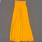 These Made by Johnny Women's Palazzo Pants in medium yellow bright modal span are perfect for a casual occasion with a relaxed fit. The wide-leg design and ankle length make them ideal for wearing in the summer, fall, or spring. The pull-on closure and high-rise waist size make them comfortable and easy to wear. The boho theme and solid yellow color add a fun and stylish touch to your wardrobe.