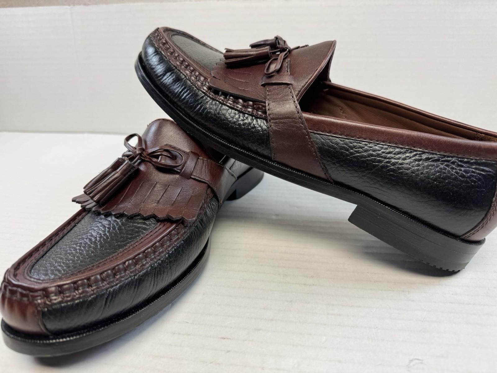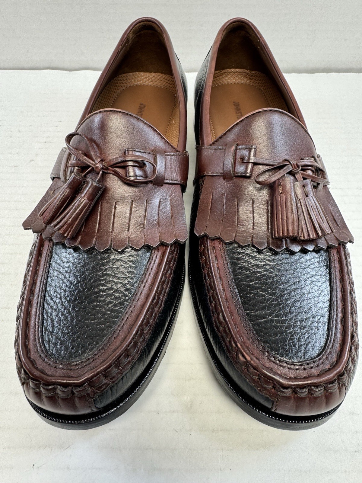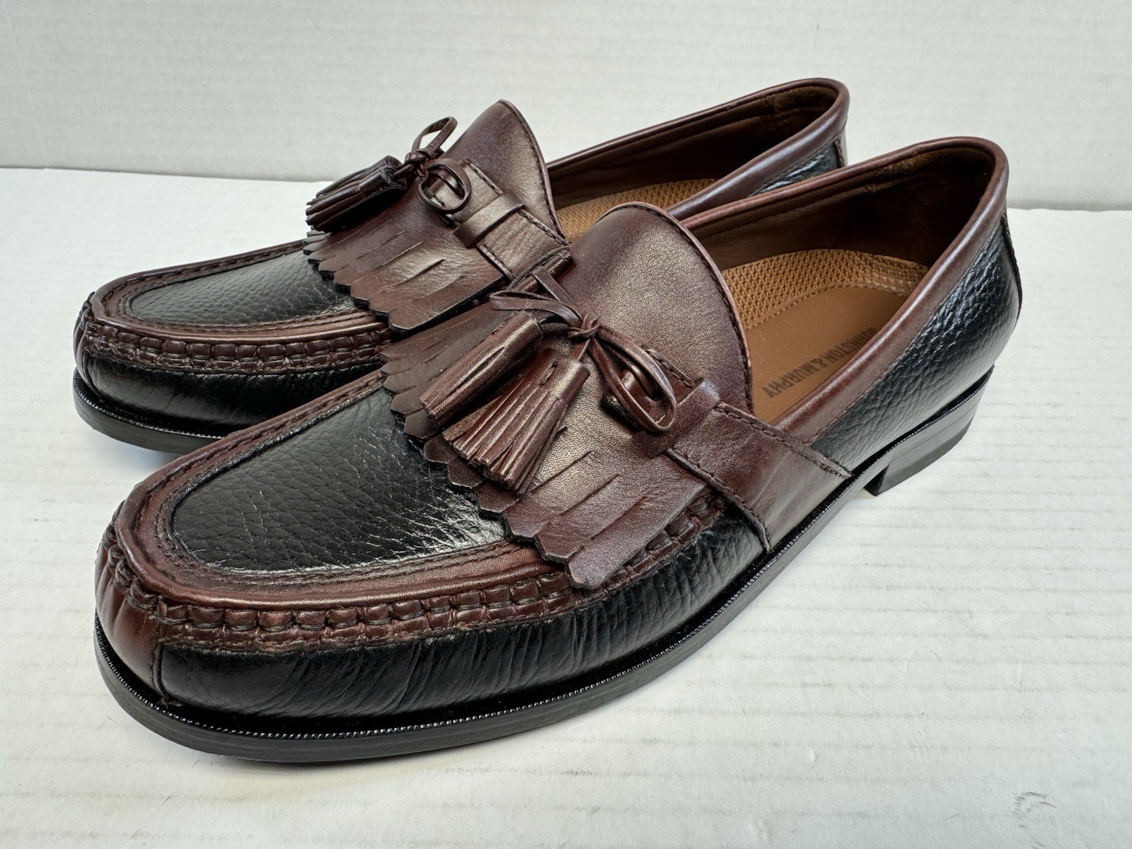 Johnston & Murphy Aragon II Kiltie Tassel Loafer Dress Casual Shoe, 10.5 M These were returned to the store with some signs of wear. easy to clean and selling at a great deal because of that. Like most leather shoes there may be some scratches or scuffs from the factory, I take pictures to show what you are getting PREMIUM LEATHER: The Aragon Kiltie Tassel Dress Shoe is made with 100% leather throughout the design of the shoe. From the leather-lined interior, all the way to the partial leather sole this shoe uses the best material for the best results. HAND-SEWN EXTERIOR: This slip-on casual shoe utilizes a hand-sewn construction on the upper portion of the shoe for an elegant and sophisticated moccasin-like design. COMFORT FOAM FOOTBED: Each shoe is crafted with a leather-covered comfort foam footbed to maximize comfort throughout the day while maintaining the elegant appearance of the shoe itself. It's all the style of a fashionable shoe with the insole of something more casual. FASHIONABLE TASSEL: The tassels and band of leather found around the tongue of the shoe are a fashionable way to cover the instep of your foot while adding a little flair to your collection. These shoes are best complemented by casual or business casual wear. ID-406498400699