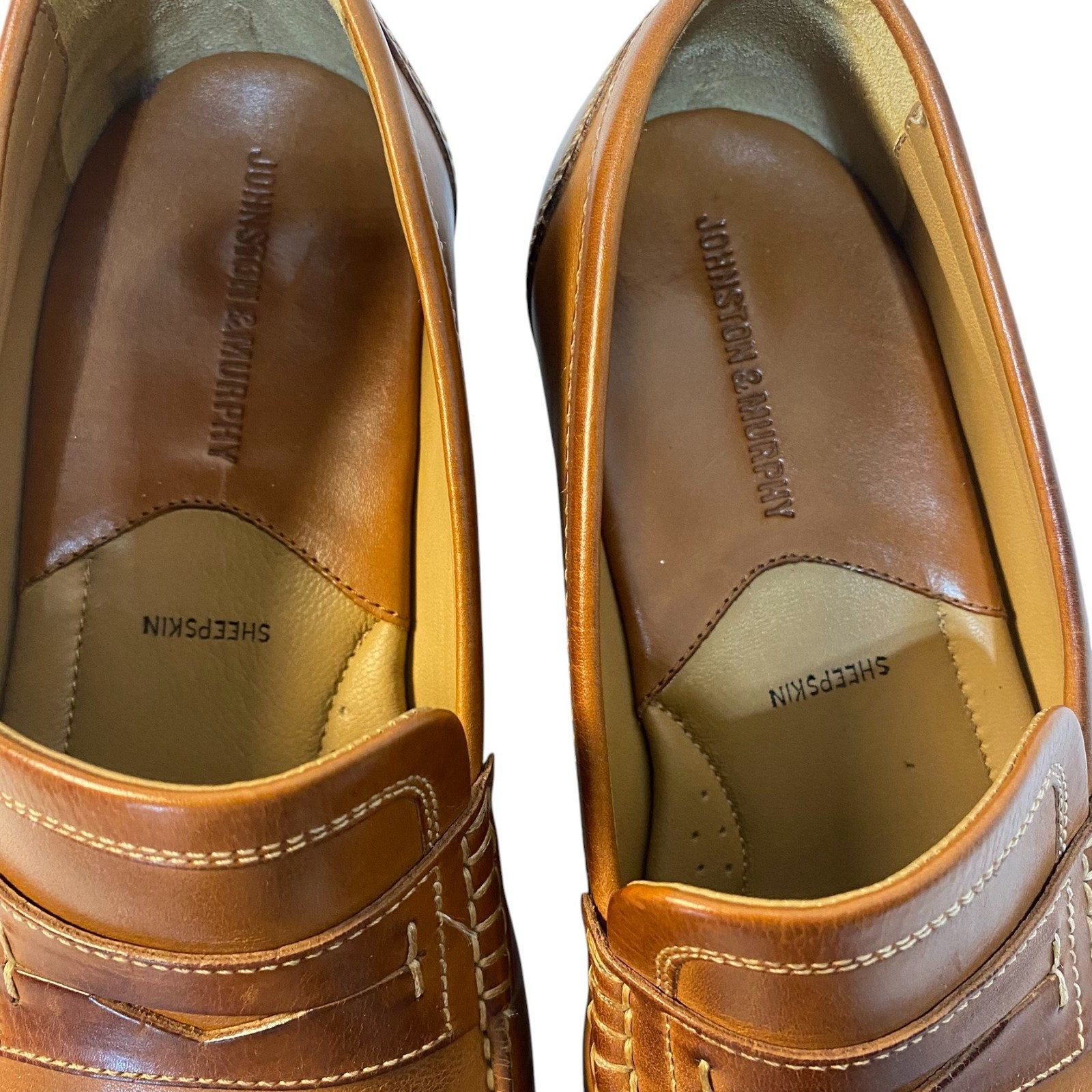 Add classic polish to your wardrobe with these Johnston & Murphy penny loafers , made from smooth cognac leather and lined with genuine sheepskin for premium comfort. These loafers are new without box (NWOB) and have never been worn . Size: Men’s 8.5M (Medium Width) Color: Cognac (a rich, warm medium brown) Material: Leather upper, leather lining, sheepskin insole Style: Penny loafer slip-on Condition: Unworn, no original box - t hese shoes have never been worn , and there are no signs of use on the insoles, uppers, or heel. They come from a smoke- and pet-free home . Outsoles show a slight surface residue consistent with bloom —a harmless cosmetic effect from storage, not wear (see photos). Check out my other listings for more great things! I list new things daily.