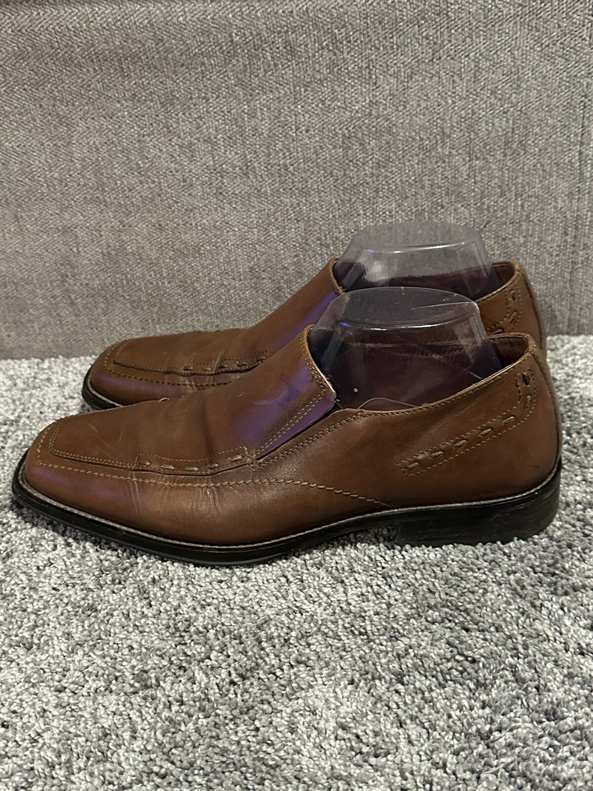 Elevate your formal look with these stylish Johnston & Murphy brown leather loafers. Crafted from genuine leather, these shoes are designed to provide comfort and style all day long. The shoes are available in size 8 and have a UK shoe size of 7, an EU shoe size of 41, and a medium shoe width. These dress shoes are perfect for any occasion, whether it's a formal event or a day at the office. The solid pattern and brown color add a touch of sophistication to your outfit. The leather lining and insole material make these shoes durable, while the outsole material provides traction and stability. Invest in these timeless shoes, and take your style to the next level. Preowned Good Condition