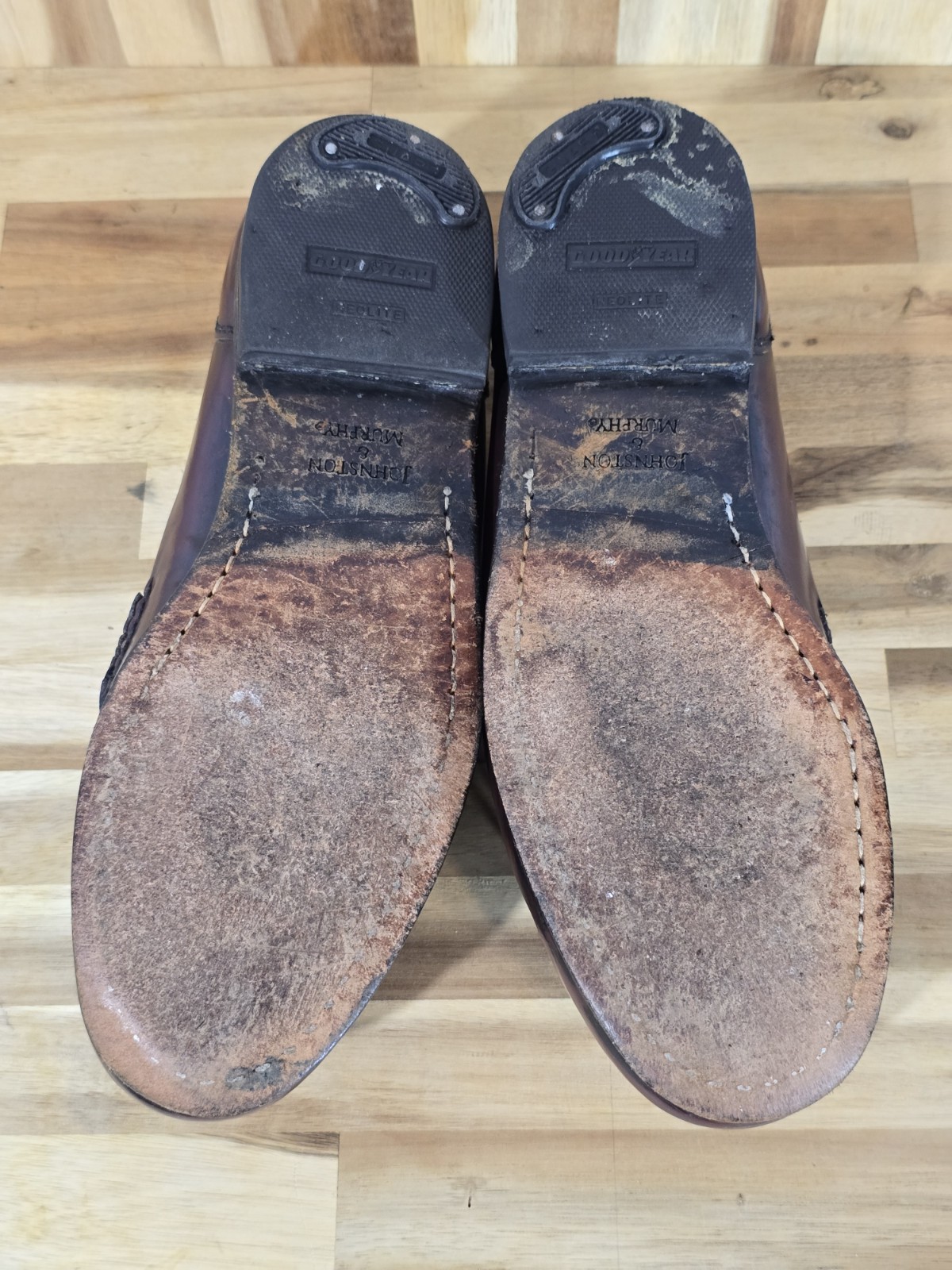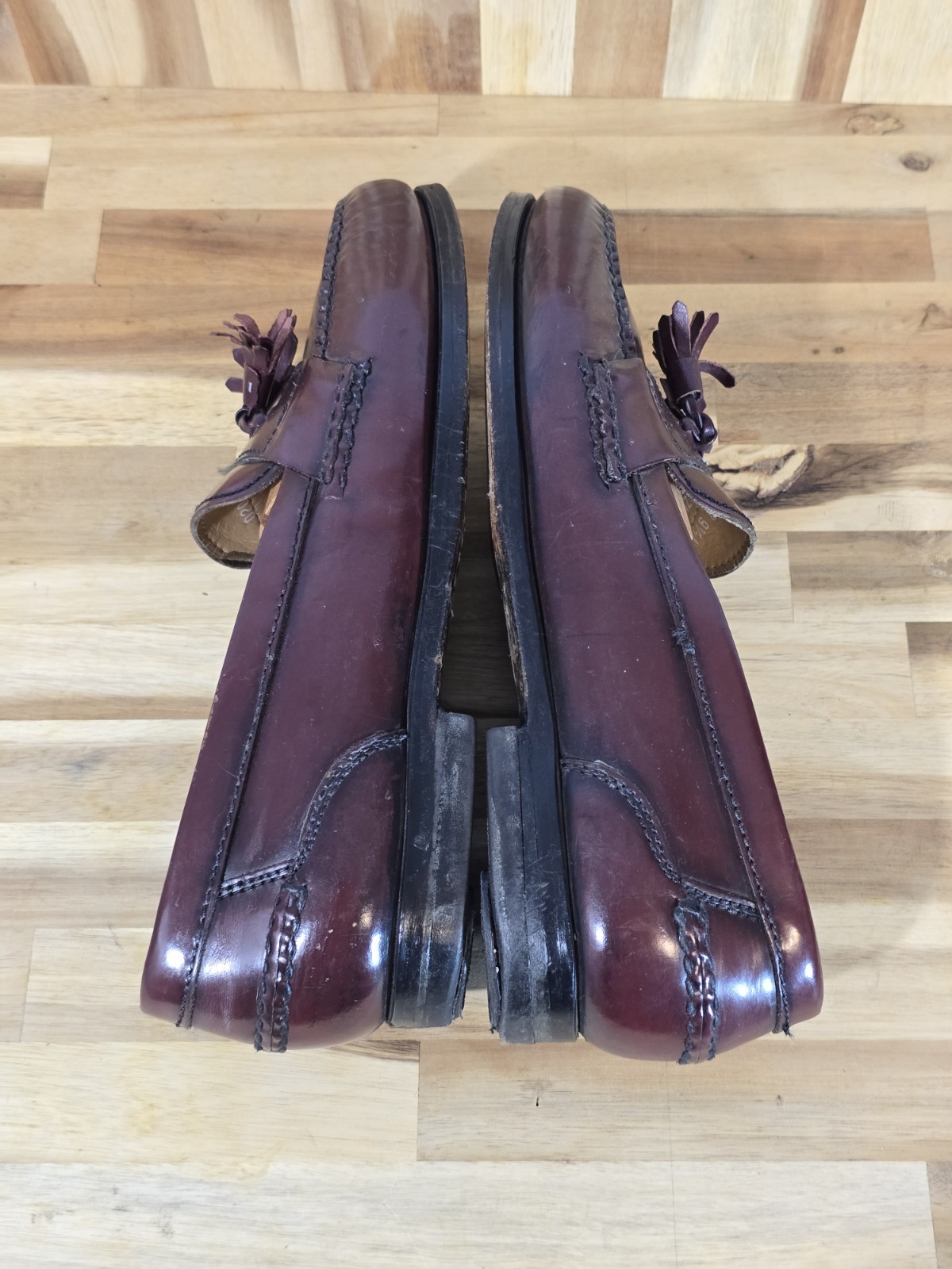 Johnston & Murphy Men's Burgundy Leather Tassel Loafers - Size 9.5M Classic American craftsmanship meets timeless style in these elegant burgundy leather tassel loafers from Johnston & Murphy. Made in Brazil with premium leather construction, these shoes feature the iconic tassel detail and moccasin-style stitching that makes them perfect for both business and casual wear. **Key Features:** • Brand: Johnston & Murphy • Size: 9.5M (Medium width) • Material: Genuine leather upper • Color: Rich burgundy/cordovan • Made in Brazil • Classic tassel loafer design • Leather sole with rubber heel tip • Moccasin toe construction Perfect for the discerning gentleman who appreciates quality footwear. These versatile loafers pair beautifully with khakis, dress pants, or jeans for a polished look.