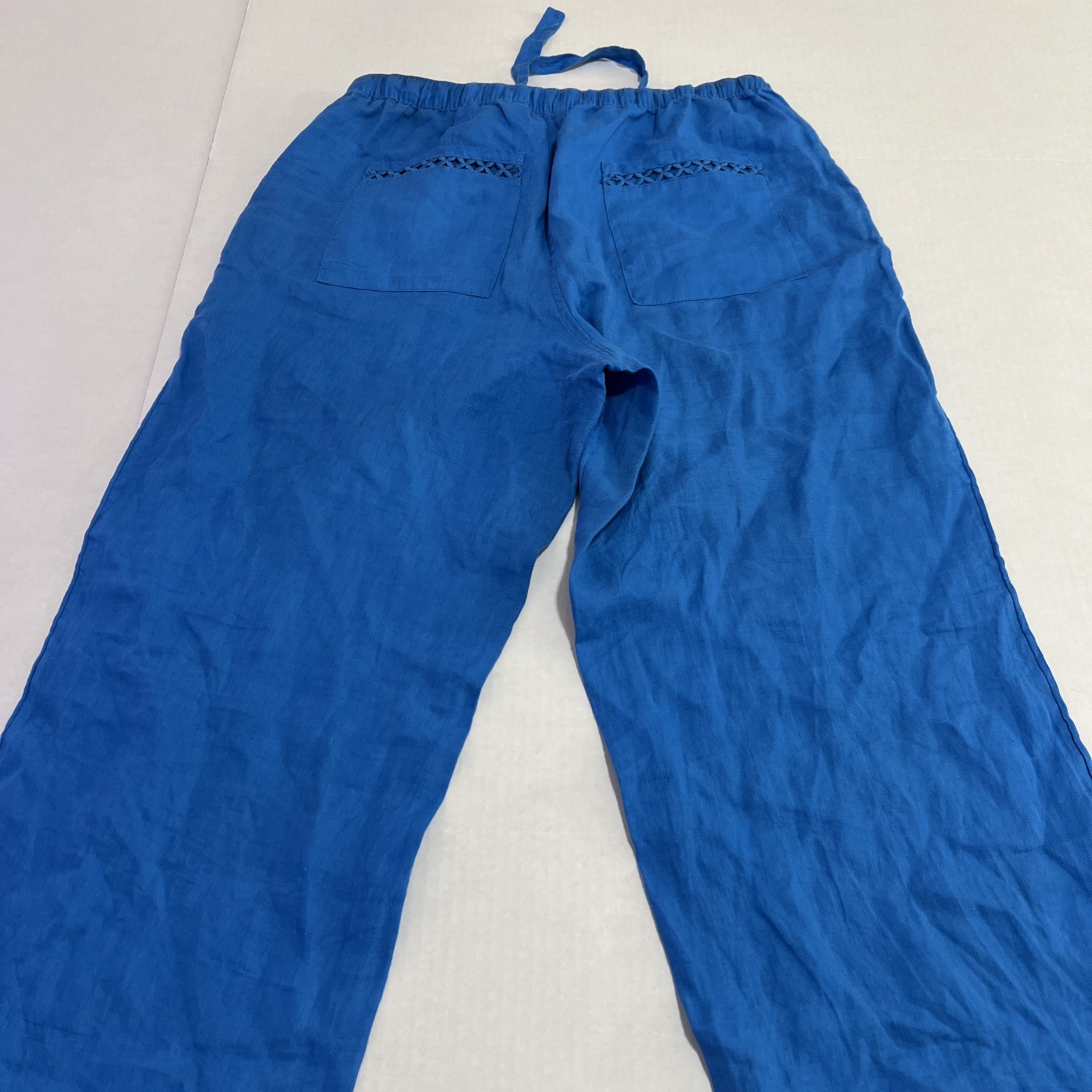 Great pair of blue linen pants for spring and summer.