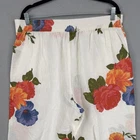 Joie Pants Womens XL White Floral Linen Wide Leg Cropped Pull On Resort Beachy Gently worn with light wrinkling from storage. Fabric and floral print clean and intact. Elastic waistband and pockets secure; no flaws. Brand: Joie Item: Womens cropped wide-leg pull-on pants in lightweight linen with vibrant oversized floral print on a white background. Size: Womens XL (regular fit) as indicated on the interior size tag. Material: 100% linen fabric, unlined construction for breathable, airy wear; made in India. Design details: Smooth front waistband with elasticized back, slip-on pull-on style, side seam hand pockets, relaxed wide leg cropped silhouette ideal for casual, vacation, or resort outfits. Pattern/Colors: Multicolor floral design featuring red, orange, and blue blossoms with green leaves scattered over an off-white base. Special notes: Lightweight feel suitable for warm weather, beach days, or pairing with tanks and tees. 23856 Measurements: Previous washings may change sizing on the tag. Refer to photos above for all measurements. Compare our measurements to one of your favorite garments. Measurements are approximate. All items are bagged and sealed after being photographed, then stored in a smoke free environment. Washed per eBay standards. I carefully package and ship daily. Contact me with any questions. Thanks