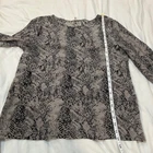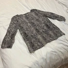 This blouse is a stunning find—soft silk with a chic snakeskin print, perfect for elevating any outfit. The 3/4 sleeves and loose fit are so comfortable, and the lapel pocket adds a stylish touch. It’s in excellent preloved condition, fits true to size, and the measurements are spot-on. Lightweight yet elegant, it’s ideal for work or a night out. Love that it comes from a smoke-free, dog-friendly home. Would definitely recommend!