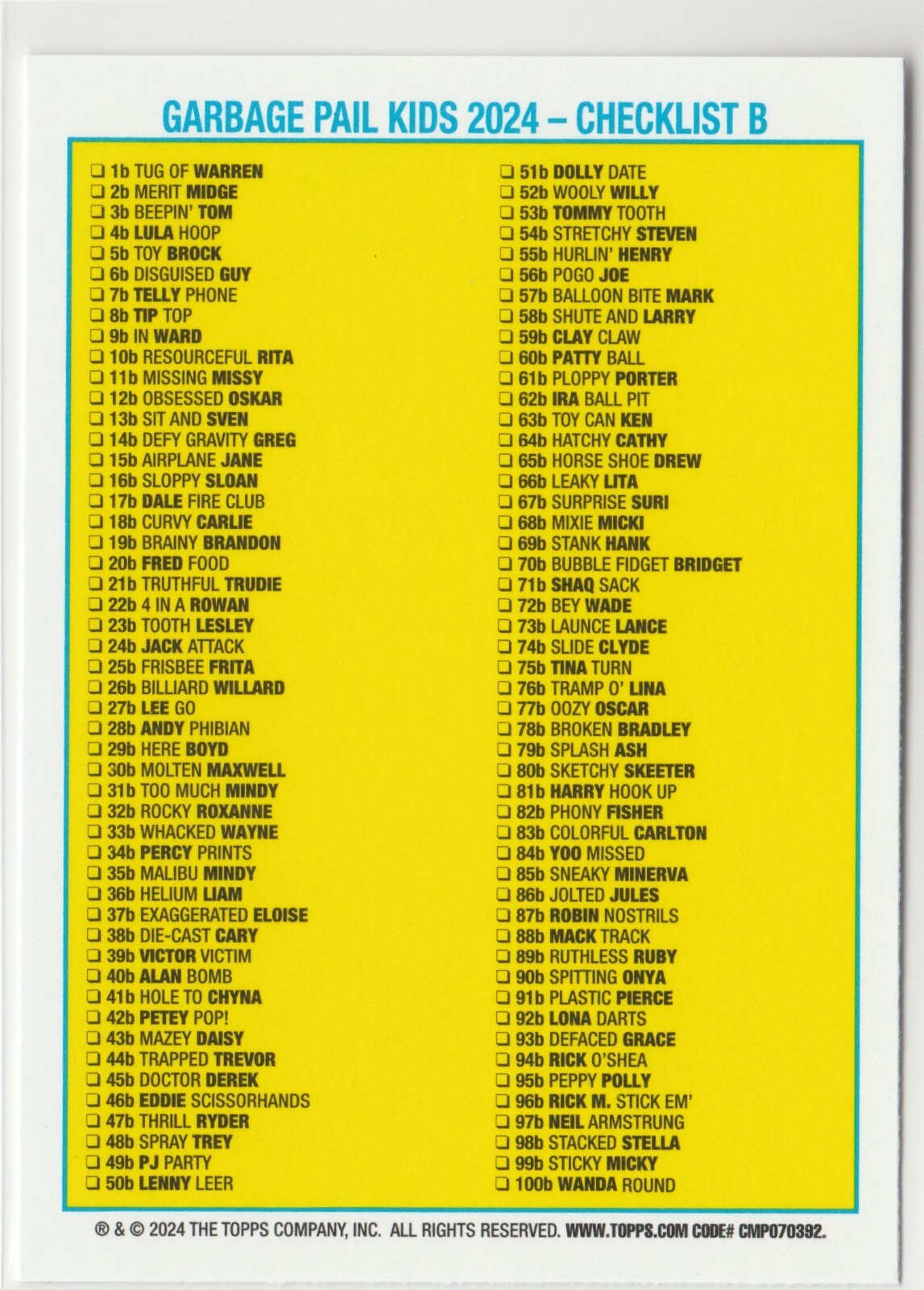 Onya Spit #90b Garbage Pail Kids GPK 2024 Kids At Play KAP Series