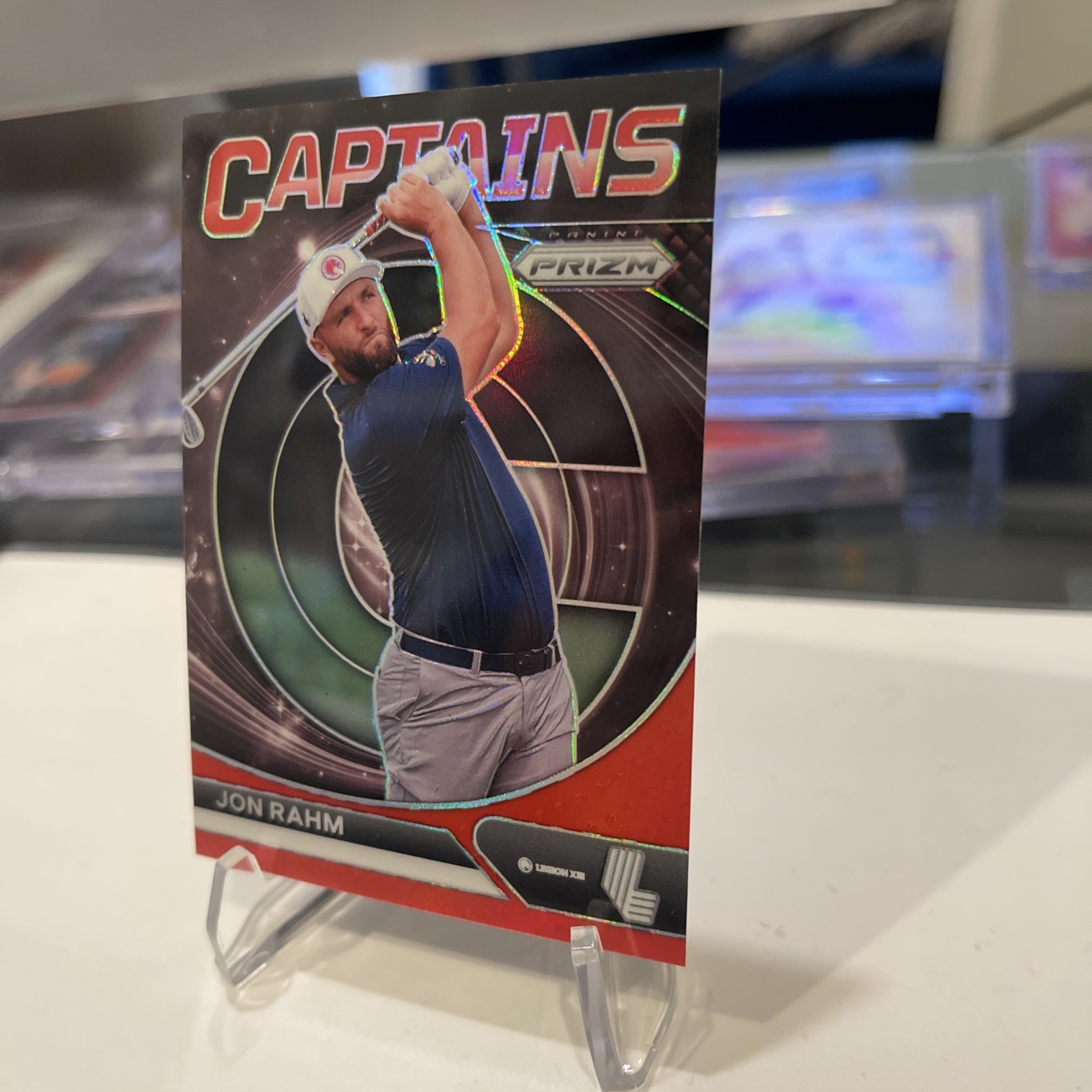 Capture the spirit of the green with this exclusive 2024 Panini Prizm LIV Golf card featuring world-class player Jon Rahm. As a key member of Legion XIII GC, Rahm is showcased in this captivating Red Prizm variant, adding a touch of distinction to this collectible. The card, numbered 75, is part of a limited print run of just 149, making it a sought-after piece for collectors and fans alike. Delve into the details that make this card a must-have: from its serial numbering indicating its rarity to its status as a Short Print from the renowned card manufacturer Panini. Whether you're expanding your collection or commemorating Rahm's impressive season, this trading card strikes the perfect balance between a prized keepsake and a tribute to a golfing great.