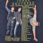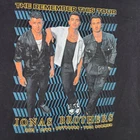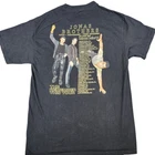 Authentic Jonas Brothers 'Remember This Tour' concert merchandise from their 2021 tour. This collectible t-shirt features the band in iconic poses with a dynamic blue chevron background design. The back displays the complete tour schedule. Perfect for fans and collectors, this shirt captures a piece of pop music history. Great for concerts, casual wear, or as a cherished memorabilia piece. Color: Black Department: Unisex Adults Type: T-Shirt Fit: Regular Sleeve Length: Short Sleeve Character: Jonas Brothers, Pop Band Members, Music Artists, Tour Performers, Concert Musicians Pattern: Graphic Print Keywords: jonas brothers, remember this tour, 2021 tour, concert merch, band tee, tour shirt, music memorabilia, pop band, concert souvenir, band merchandise, tour dates, graphic tee