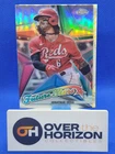 The product is a 2024 Topps Chrome Logofractor trading card featuring Jonathan India of the Cincinnati Reds. This parallel variety card has a print run of only 250, making it a rare and collectible item for baseball fans and card collectors. With exclusive features like serial numbering and being part of a limited edition set, this card is a valuable piece for any collection and a highly sought after item for fans of the sport.