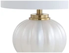 This lamp is absolutely stunning! The white and brass gold pearl finish adds a touch of elegance to any room. The LED bulb provides warm, bright light, and the faux silk shade softens the glow beautifully. It's the perfect size for a side table or nightstand, and the crystal and glass construction feels high-quality. Love the rotary switch for easy control—definitely a stylish and functional addition to my home!