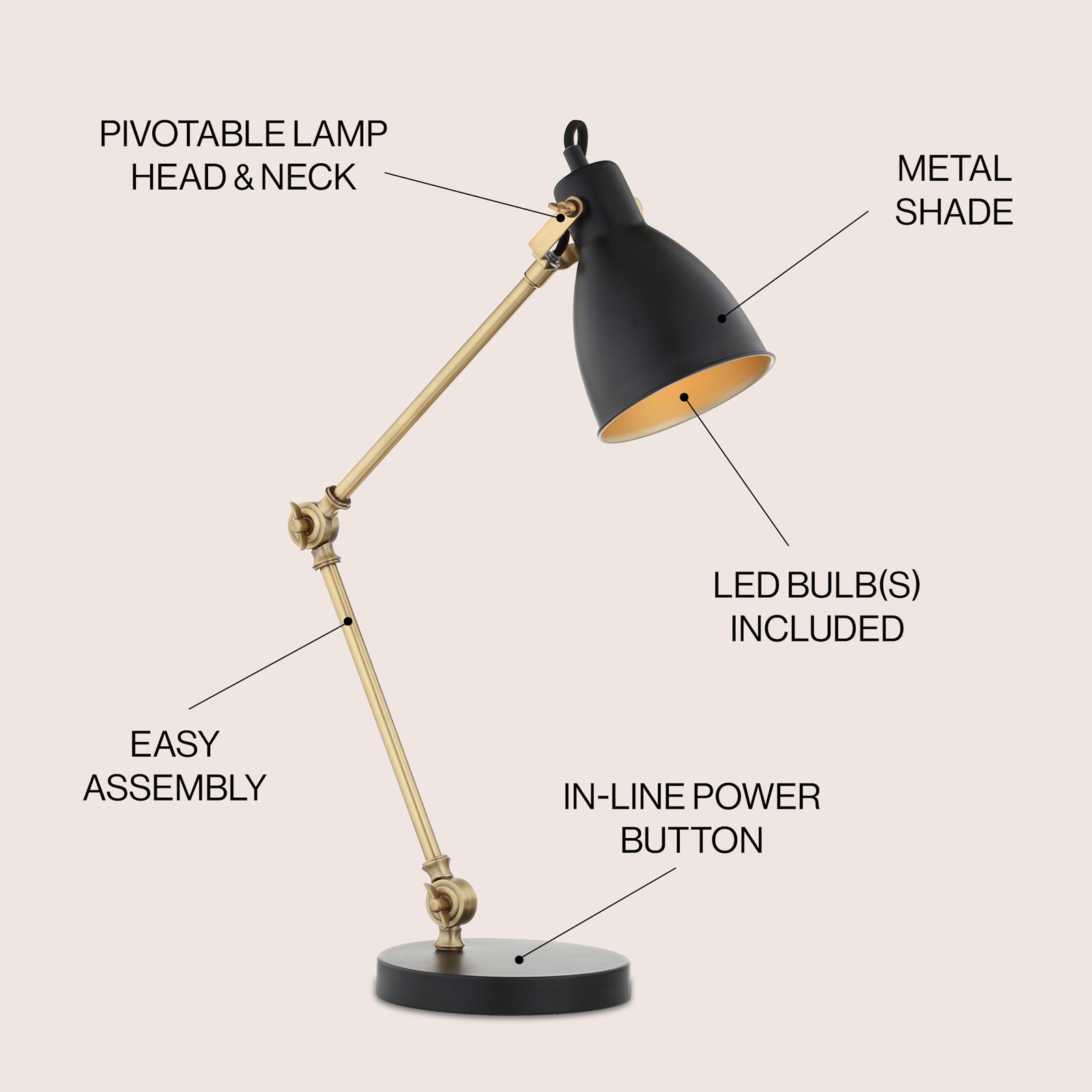 This stylish LED swing-arm desk lamp is a game-changer! The adjustable design makes it perfect for focused work, while the soft brass-lined shade creates warm, glare-free light. It’s sturdy, easy to reposition, and the included bulb provides great brightness. The long silk-wrapped cord adds a classy touch, and the on/off switch is conveniently placed. Love how it blends function and modern style—definitely a great addition to any desk or workspace.