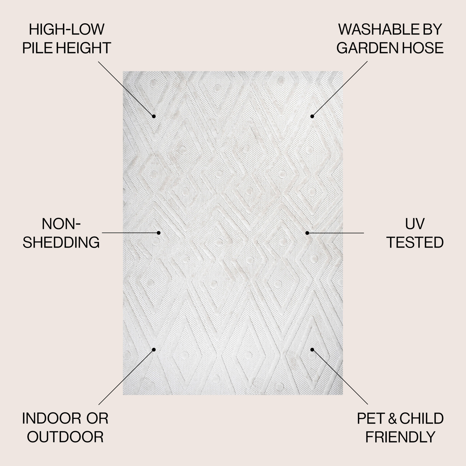 This rug is a game-changer! The bold Moroccan-inspired pattern adds instant style to any space, indoors or out. The durable polypropylene holds up beautifully against pets, kids, and weather while still looking chic. Love how the mingled threads create a handwoven look—so much character! Perfect for high-traffic areas, easy to clean, and the colors stay vibrant. A fantastic value for such a stylish, tough rug that works everywhere from patios to bedrooms.