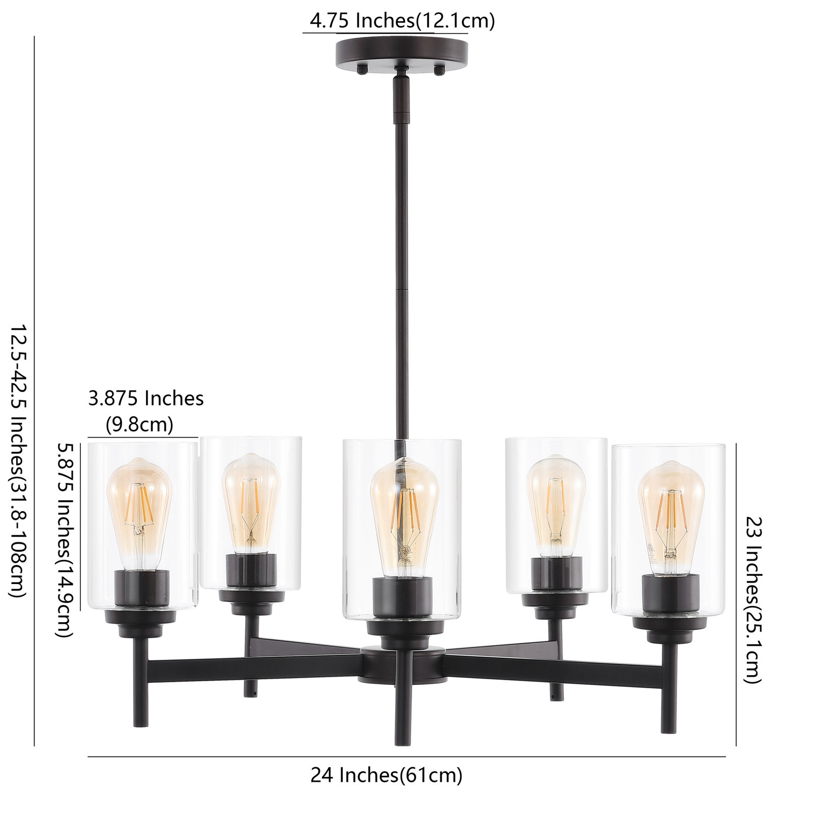 Powered by Frooition All Categories JONATHAN Y Lighting JYL9546 Orpheus 5 Light 24" Wide LED Chandelier Overview Item Description Add vintage flair with our classic industrial-style ceiling fixture. Adds a rustic-modern touch to a kitchen, dining room, or entry. Features Replace outdated kitchen or dining room lighting with a simple Edison light fixture for a minimalist farmhouse makeover Professional installation is recommended Constructed from Iron Comes with a Clear Glass shade Sloped ceiling compatible (5) 5 watt maximum medium (E26) LED bulbs included Includes (2) 6" and (2) 12" downrods Vintage Edison bulbs included UL rated for dry locations Meets California Title 24 energy standards Covered under a limited 30 day warranty Dimensions Fixture Height: 23" Minimum Height: 12-1/2" Maximum Hanging Height: 42-1/2" Width: 24" Depth: 24" Product Weight: 6.71 lbs Shade Height: 5-7/8" Shade Width: 3-7/8" Shade Depth: 3-7/8" Electrical Specifications Number of Bulbs: 5 Max Watts Per Bulb: 5 watts Lumens: 350 Bulb Base: Medium (E26) Bulb Shape: T45 Bulb Type: LED Color Temperature: 2700K Color Rendering Index: 80 CRI Bulbs Included: Yes Why Choose BuildInc? OUR PROMISE TO YOU About Us At Build, we promise to provide the best selection we can, most competitive pricing, and unmatched customer service. Our store has quality home improvement products from trusted manufacturers like Moen, American Standard, Delta, Kraus, Kichler, Progress Lighting, Schlage, Kwikset, Baldwin, Broan, NuTone, Air King, and Rev-A-Shelf. With over 200,000 home improvement products for you to choose from, we have just what you need to get your project done. Fast & Free Shipping We promise to make it our priority to get you your items as fast as we can. We ship from 440 warehouses around the country, ensuring that your product will get to you as soon as possible. We know you're eager to get your hands on your new purchase, we would be too. As a bonus, most items ship for free. Returns We are happy to accept returns of unused or defective items for a refund within 30 days from the date of delivery. For returns outside 30 days, please contact our Customer Service team to go over our options. For full details, please view the Shipping and Payments tab above. To initiate a return simply go to the eBay Returns Portal and submit a return request. We ask that all items be returned with all original components via a traceable method. Once your return is received and processed, we will quickly get your refund or replacement issued. If for any reason you are unsatisfied with your purchase or for product or warranty questions, please contact Customer Service team for assistance. More Items! View more great items! About Us | Shipping | Returns | Contact Us | FAQ | Collections | Special Offers! Powered by Frooition Frooition Frooition | No-js Template | eBay design, eBay store design, eBay shop design, eBay template design, eBay listing design (ver:froo_no_js) This listing is currently undergoing maintenance, we apologize for any inconvenience caused.