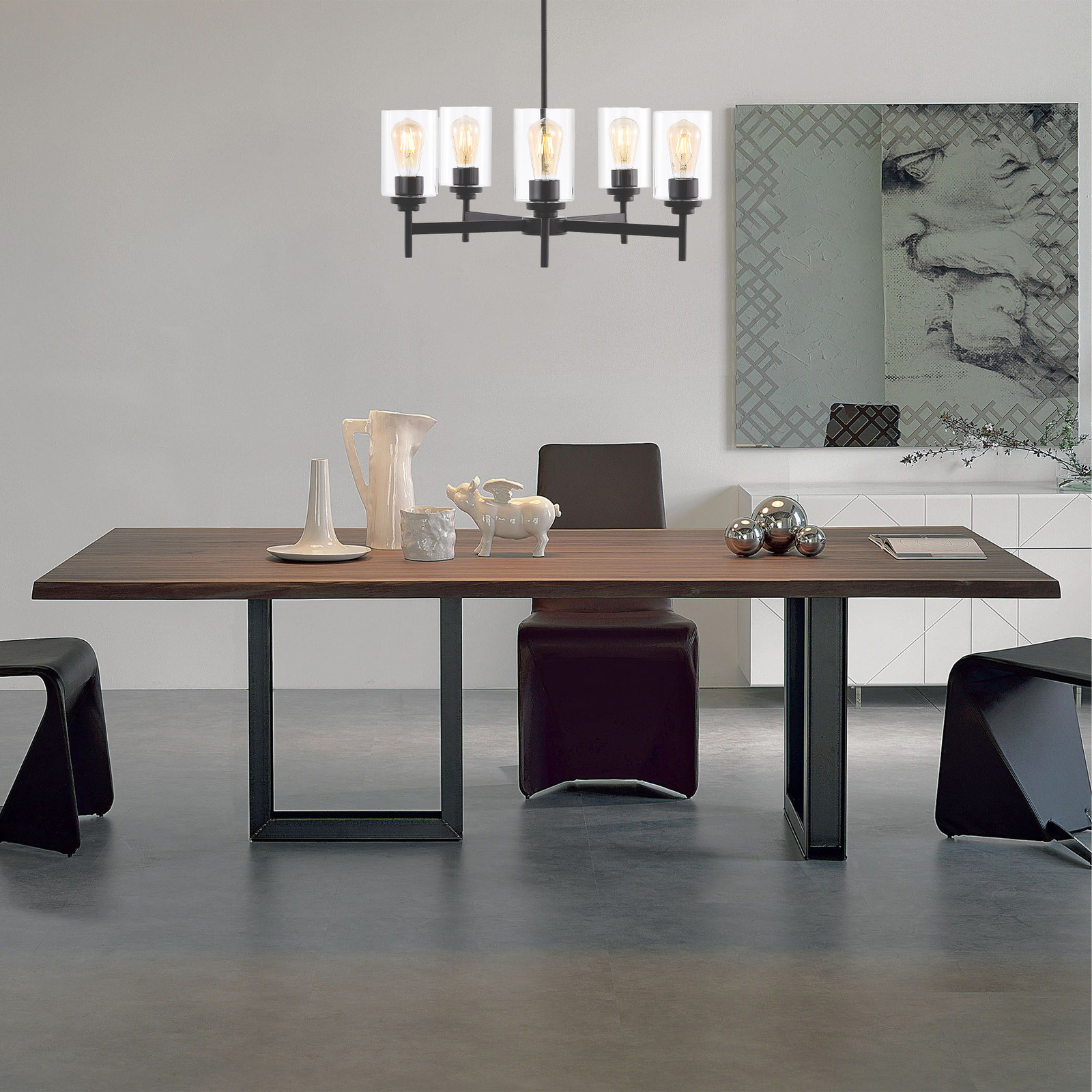 This chandelier is a stunning blend of rustic charm and modern elegance. The bronze finish and clear glass shades give it a timeless industrial vibe, perfect for upgrading a kitchen or dining space. The warm LED glow creates a cozy atmosphere, and the sloped ceiling compatibility is a huge plus. Installation was straightforward, though having a pro handle it is smart. The iron construction feels solid and high-quality. Absolutely love how it transforms the room—great value for the price!