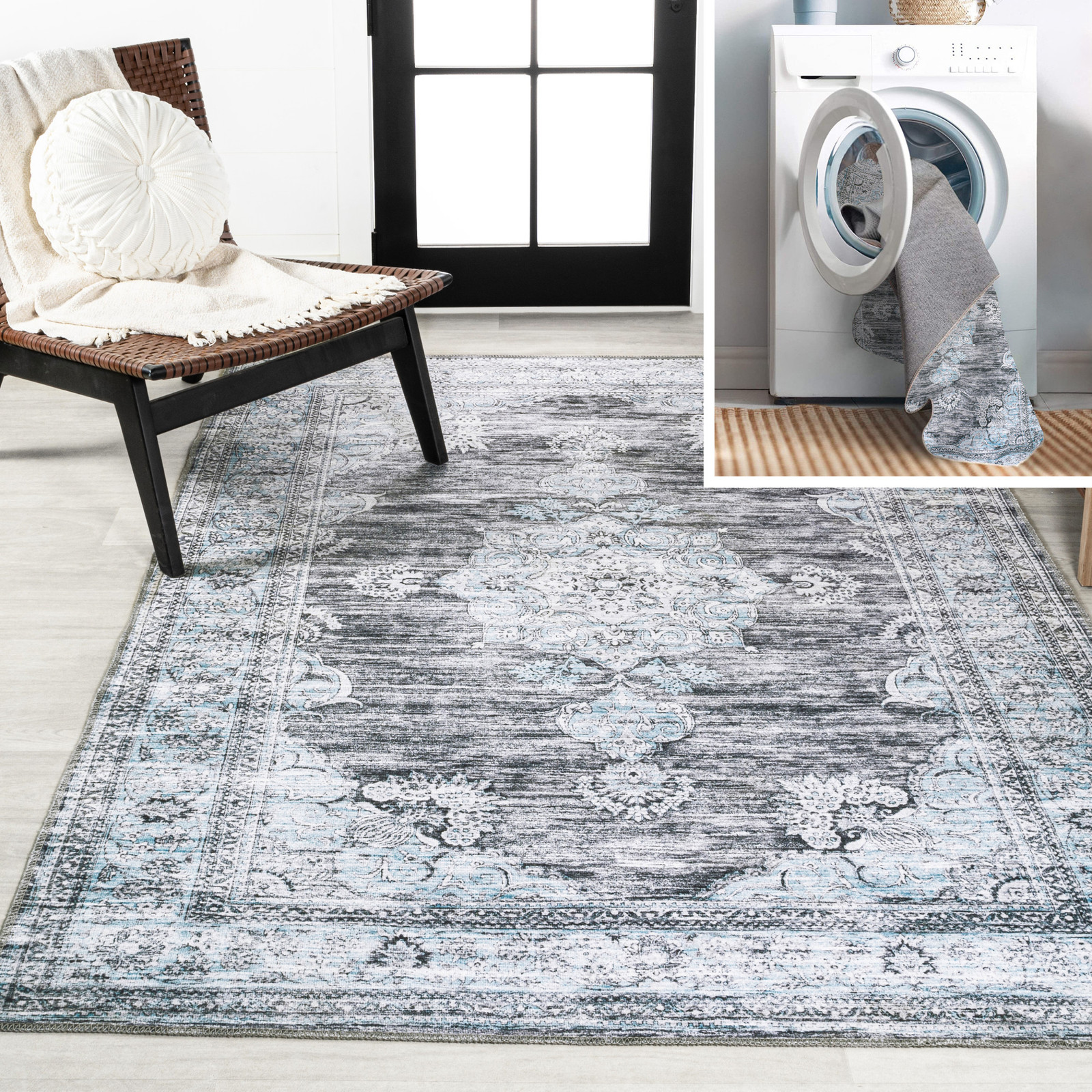 I absolutely love this rug! The distressed medallion design adds a cozy boho vibe to my living room, and the chenille feels soft underfoot. It stays perfectly in place thanks to the non-slip backing, and I was thrilled to find out it's machine washable—so convenient! The thickness is just right, giving comfort without being bulky. Perfect for high-traffic areas since it holds up well. A stylish and practical choice!