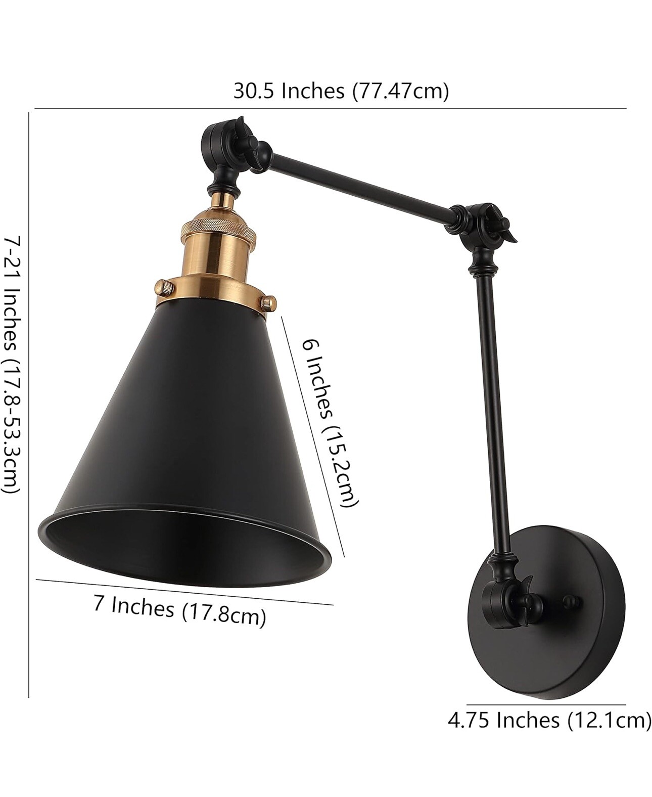 JONATHAN Y JYL7462A-SET2 Rover 7" Farmhouse Industrial Adjustable Arm Metal LED Wall Sconce Rustic Bohemian 2700K 4W Bulb for Entryway Lobby Kitchen Bathroom Bedroom Hallway, Black (Set of 2)