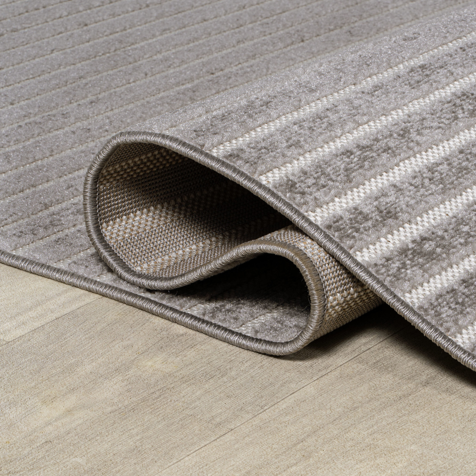 Love this rug! The stripes give a fresh, modern look that fits perfectly in my living room. Durable and easy to clean, it handles daily foot traffic without showing wear. The two-tone colors add subtle style, and the polypropylene material works great for both indoor and outdoor use. Lightweight yet sturdy—highly recommend!