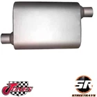Jones JUB912 Quiet Tone Exhaust Muffler 2.5" Offset Inlet / 2.5" Offset Outlet Part # JUB912 Universal Stainless Steel Turbo Gray Exhaust Muffler (JUB912) by Jones Exhaust®. Muffler Inlet Diameter: 2.5". Muffler Outlet Diameter: 2.5". Muffler Body Length: 18". Muffler Sound: Mild / Stock. Muffler Configuration: Offset - Offset. This product is made of high-quality materials to serve you for years to come. Designed using state-of-the-art technology and with customers in mind. It will meet your needs and deliver great quality at an affordable cost. Specifications: Material: Stainless Steel 4" x 9" Oval, 14" Body Length, 18" Overall Length 2.5" Offset Inlet 2.5" Offset Outlet Fits 2.5" Pipe Muffler Sound: Mild / Stock Full Boar Quiet Tone Series Offers The Benefits Of Performance Without The Noise! Mild exhaust tone, incorporating baffle designs to produce reduced interior sound levels Great for tow vehicles, SUVs, vans and late-model trucks where sound control is as important as horsepower development