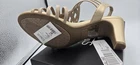 Brand: Jones New York Style: Jny-Danely womens open-toe dress sandals with mid heel and slingback strap. Color: Soft Gold-C (soft metallic gold tone). Size: Womens 9 M. Design details: Strappy upper with elasticized slingback, cutout lattice vamp embellished with small rhinestones, open toe, mid-height block heel, textured rubber outsole for traction. Includes original Jones New York shoe box (Soft Gold-C, size 9M, style WYO1233W). UPC: 198039032410