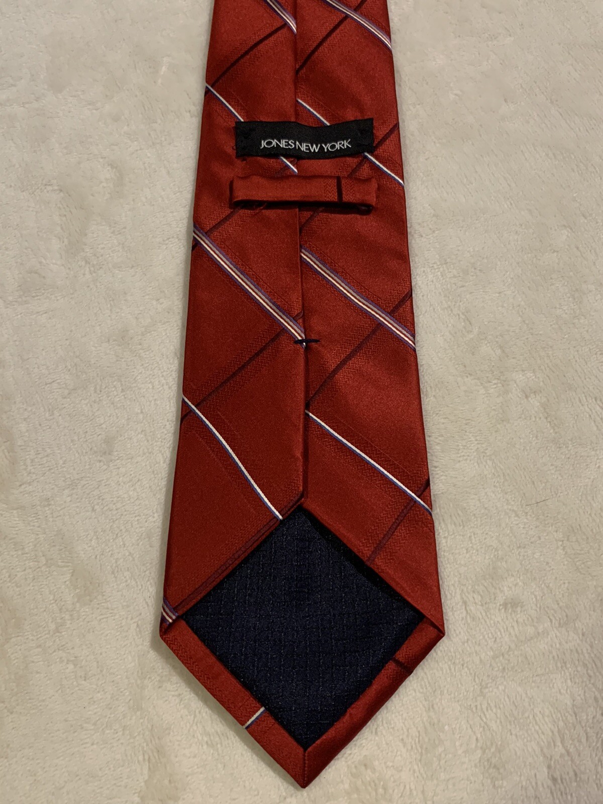 Jones New York Men’s Necktie Tie Neckwear Diamond Striped Red 58”x3.75” Item in excellent condition