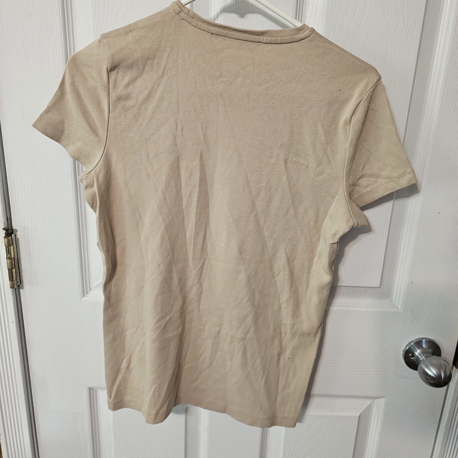 The Jones New York Signature Short Sleeve Sweater in Tan is a classic and stylish addition to any woman's wardrobe. Made from comfortable cotton knit fabric, this sweater features a solid brown color with a crew neck and short sleeves. The size large sweater is designed in a classic fit, perfect for a timeless and sophisticated look. The brand's signature, along with the money-themed elements, adds a touch of elegance and sophistication to this pullover sweater, ideal for a chic city-style ensemble.