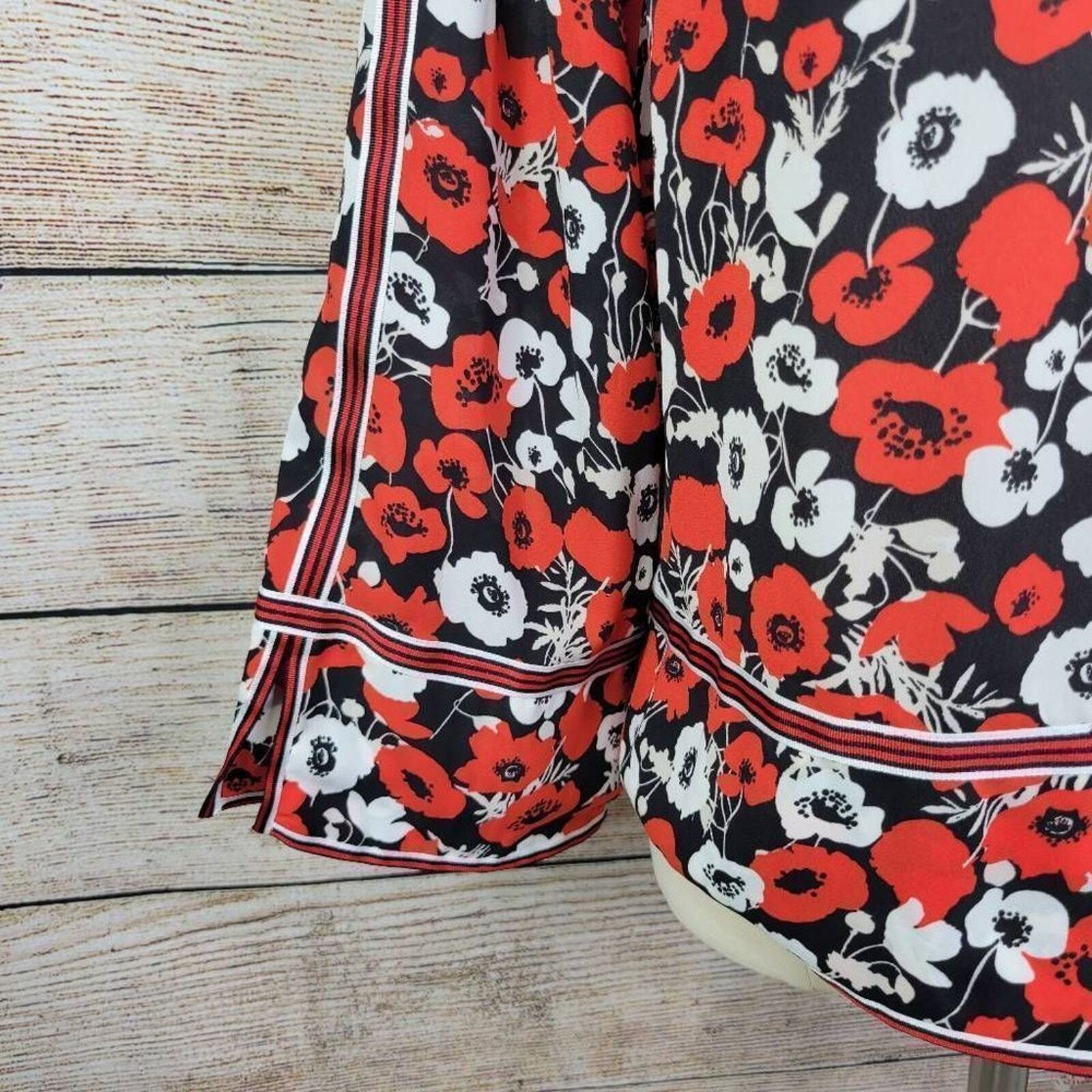 This top is a fantastic find! The floral print is stylish yet versatile, perfect for both casual outings and dressier occasions. The long sleeves with slits add a nice touch, and the polyester fabric feels comfortable and durable. The red and black color combo is classic and easy to pair. It fits true to size, and the pre-owned condition is excellent—barely looks worn. Easy to care for with simple machine washing. Love the quality and design from Jones New York!