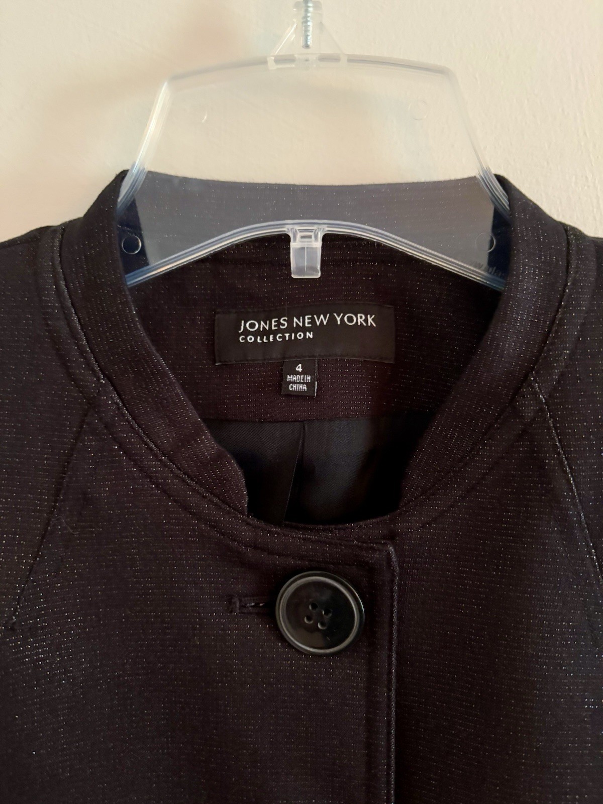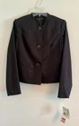 The Jones New York Women's Jacket in size 4P is a stylish and elegant outerwear piece suitable for business settings. Made from a comfortable cotton blend material, this black jacket is designed specifically for petites, adding a flattering touch to any outfit. With a retail price of $179, this new with tags jacket offers a versatile and sophisticated addition to any woman's wardrobe.