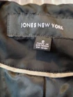 The Jones New York Women's Rain Jacket Hooded Windbreaker in black, size small, is a stylish and practical outerwear option for casual occasions. Made of polyester with a softshell fabric type, this mid-length jacket features a zip closure, hood, and water-resistant design. Perfect for summer, fall, and spring, it also offers a regular fit and long sleeves for added comfort and functionality. With a classic outdoor theme and machine washable care instructions, this jacket combines fashion and practicality seamlessly.