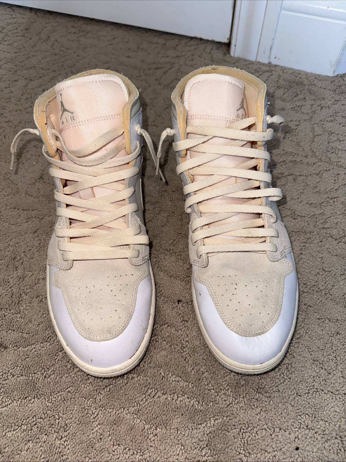 The Jordan 1 High is a stylish and classic sneaker designed for men with a high top shaft style. This solid white shoe features a lace up closure for a secure fit and is made with leather upper material for durability. The rubber outsole provides traction and comfort, making it an ideal choice for basketball and other activewear occasions. With retro themes and the Air Jordan product line, this shoe combines style and performance for a comfortable and fashionable footwear option in size 12.