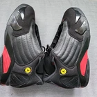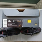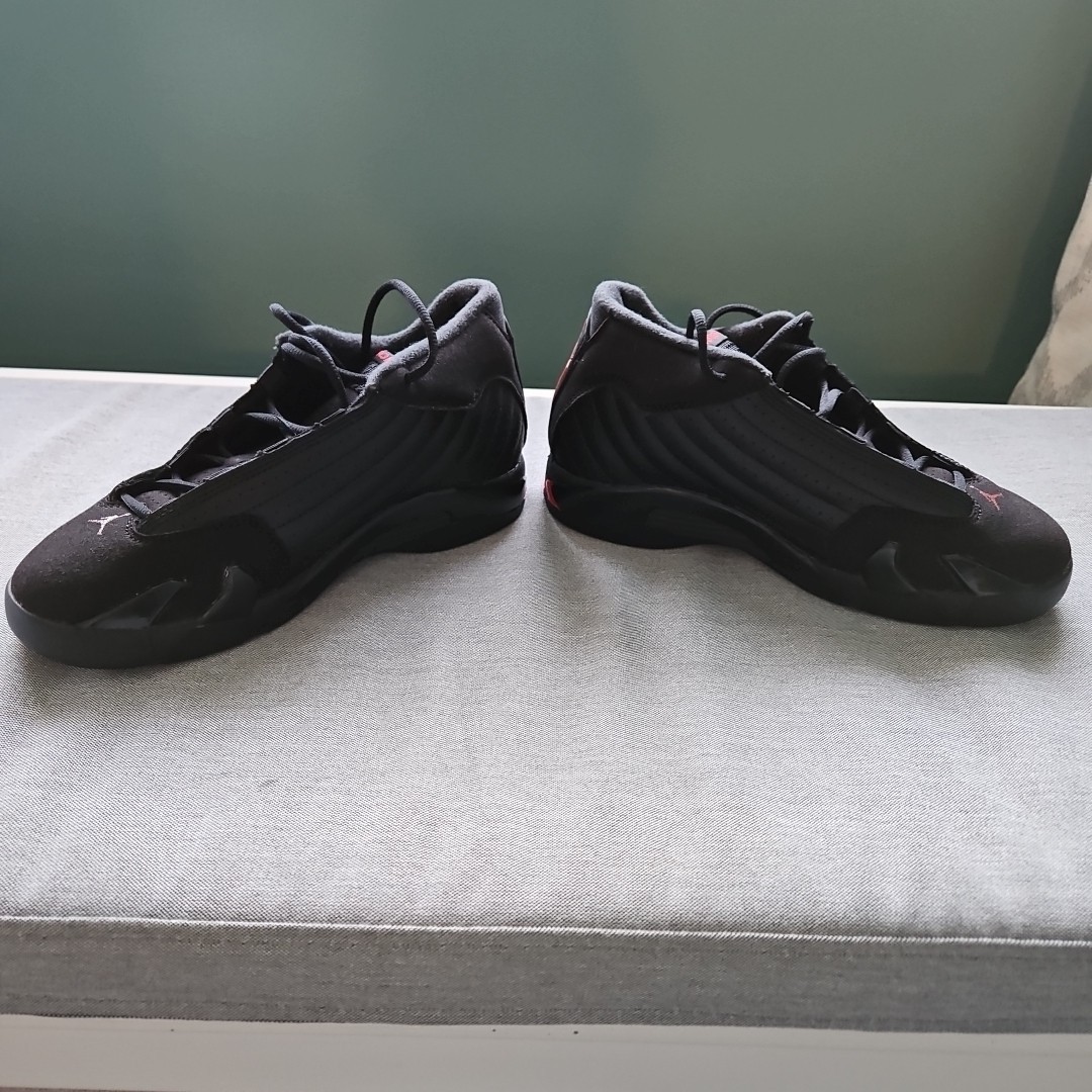 Elevate your sneaker collection with the Jordan 14 Retro Bp Last Shot, a highly sought-after pair from the 2017/2018 release.These fit teen or young boys , woman with small feet or teen girls .These shoes feature a sleek black leather upper, providing a sophisticated look that's hard to miss. Designed with both style and performance in mind, they come equipped with arch support, cushioned insoles, and a comfortable fit to keep your feet feeling great all day long. The retro theme pays homage to the sneaker's rich history, while the lace-up closure ensures a snug and secure fit. With the iconic Air Jordan product line behind them, these athletic sneakers are not just a fashion statement, but a statement of quality and heritage. Whether for casual wear or sports activities, these shoes are poised to enhance your experience with every step.