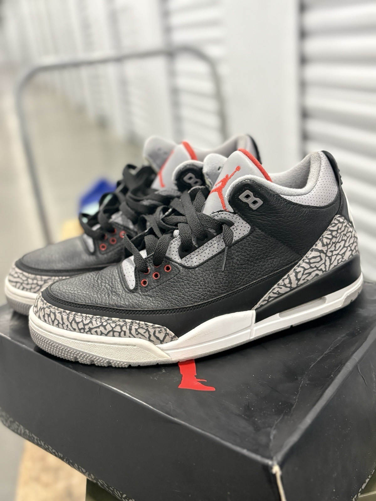 The Jordan 3 Black Cement in size 11 2018 is a stylish sneaker with a retro theme, perfect for activewear occasions. This mid-top shoe features a lace-up closure, rubber outsole, comfort insole, and leather upper material for durability. With a solid black colorway and iconic Jordan branding, this athletic shoe is a versatile choice for fall and spring seasons, whether you're hitting the basketball court or simply want a trendy footwear option.