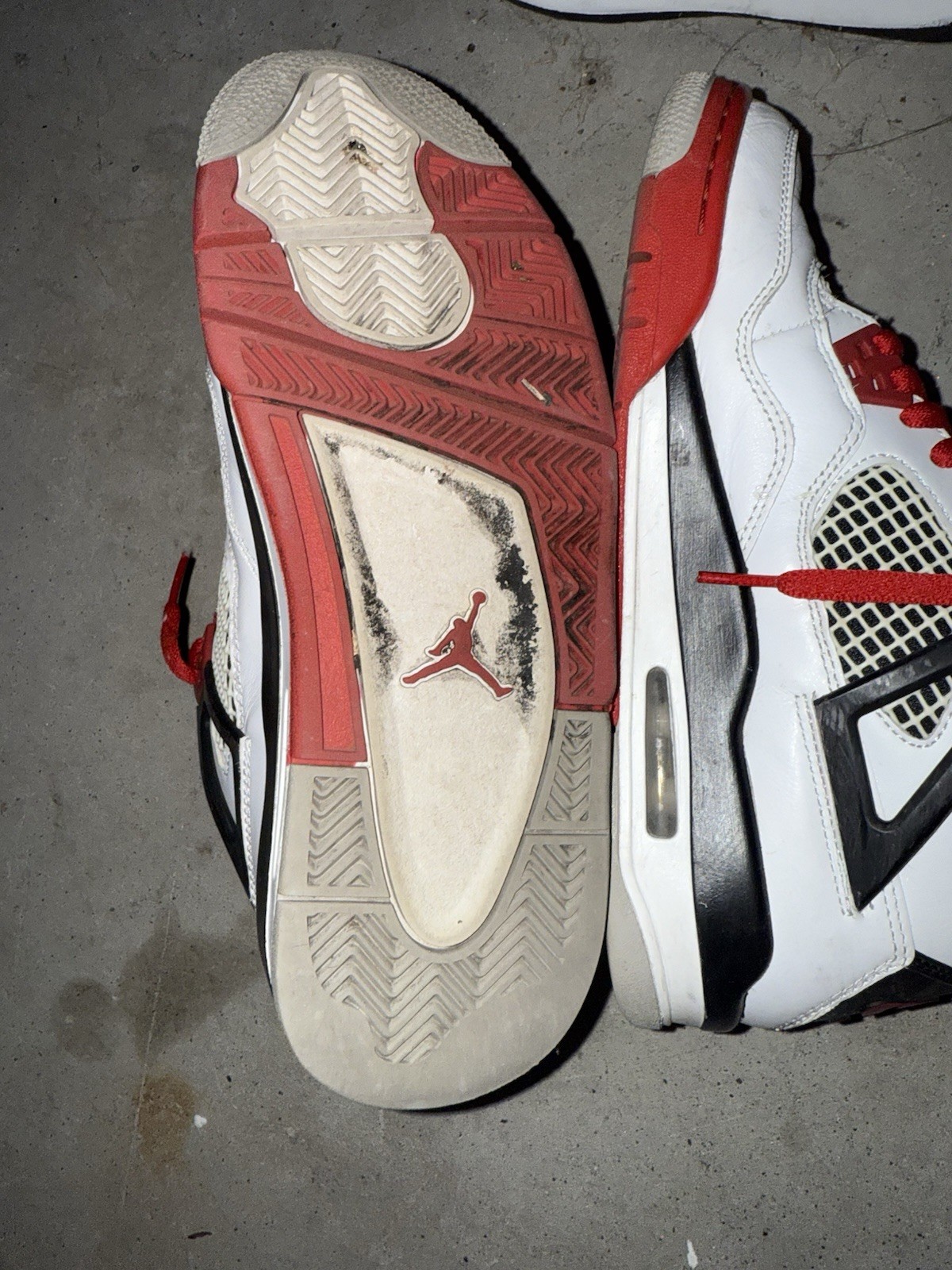 The Jordan 4 Retro Red Cement in size 7Y is a stylish and iconic sneaker designed for casual occasions. Made with leather upper material, this lace-up closure shoe features the classic red colorway and retro theme typical of the Jordan brand. The Nike Air product line ensures comfort and quality, making it a perfect choice for men looking to add a touch of sporty style to their outfit during the summer season. This sneaker has already been worn once, offering a chance for a new owner to enjoy its timeless design and performance.