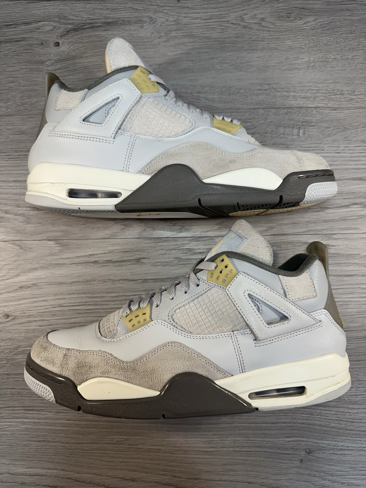 Jordan 4 Retro SE Craft | Size 12 | Damaged Box | Used: Sole wear, Creasing, Discoloration The Jordan 4 Retro SE Craft in size 12 is a stylish and versatile sneaker designed for athletic use. With a low top shaft style and a sleek gray color, this shoe is perfect for men looking to make a statement. The Air Jordan 4 model from the Air Jordan product line ensures both quality and style, making it a desirable choice for sneaker enthusiasts. Released in 2023, this retro sneaker combines the iconic Air Jordan design with modern comfort and performance features, making it a must-have for any sneaker collection.