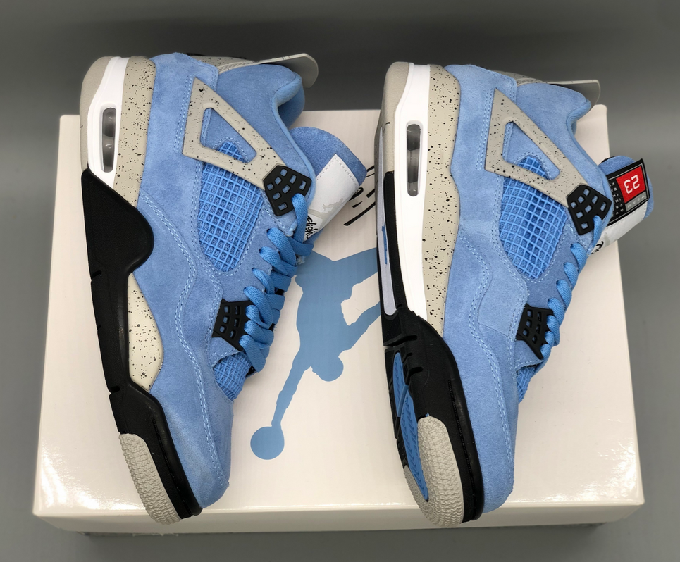 Men's Jordan 4 Retro "University Blue" Basketball Shoes | Multiple Sizes Available Step up your style and performance with the iconic Men's Jordan 4 Retro, featuring the highly sought-after "University Blue" colorway. A staple for sneakerheads and athletes alike, these shoes deliver timeless design and unbeatable comfort. Key Features & Benefits: ๐ฅ Iconic "University Blue" Design: Turn heads with the classic Jordan 4 silhouette, showcasing a bold University Blue, white, and black color scheme. Perfect for making a statement on the court or in your casual wardrobe. โ๏ธ Premium Materials & Craftsmanship: Built with high-quality materials for lasting durability, support, and all-day comfort. Experience the exceptional performance and attention to detail that Jordan Brand is known for. ๐ Versatile Wear: Whether you're hitting the basketball court, styling a streetwear look, or adding to your sneaker collection, the Jordan 4 Retro delivers both function and fashion. ๐ Multiple Sizes Available: We offer a range of sizes to ensure the perfect fit. Check our size chart (if applicable) and order with confidence! Condition & Details: Condition: [Please specify, e.g., Brand New with Original Box / Like New / Pre-owned Excellent Condition] Includes: Shoes only โ NO original box included. Why Buy From Us? ๐ Fast Shipping: Quick order processing and delivery so you can enjoy your new kicks ASAP. ๐ฆ Secure Packaging: We ensure your shoes arrive in perfect condition with safe, protective packaging. ๐ฌ Reliable Customer Service: Got questions? Weโre here to help! Friendly support before and after your purchase. Need Help? Contact us with any questions before buying. Weโre happy to assist! Note: Colors may appear slightly different due to monitor settings. Please refer to the product images for the most accurate representation.