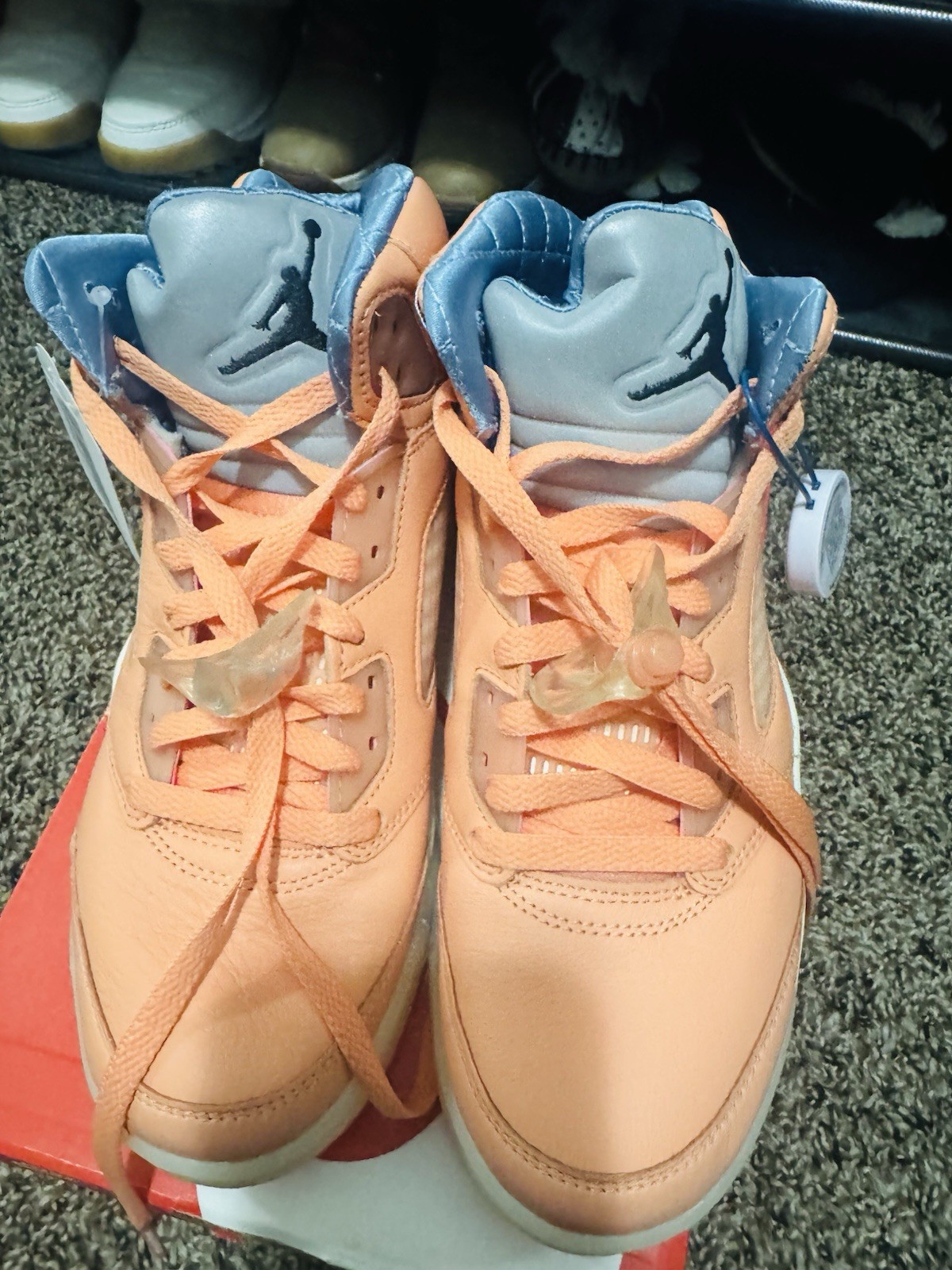 The Jordan 5 Men's DJ Kale is a stylish mid-top sneaker with a vibrant orange color scheme inspired by DJ Khaled's "We The Best" theme. This collaboration model, part of the Air Jordan 5 series, features the iconic Jordan brand design with a unique twist. The shoe is sure to make a statement for those looking for a bold and on-trend athletic footwear option.