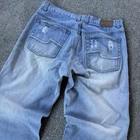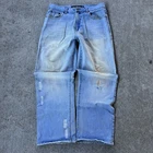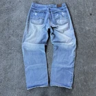Vintage Y2K Jordan Craig Light Blue Wash Baggy Jeans - size 36x32, measurements: 17.75 waist, 29.5 inseam, 10 leg opening - nice distressing and fade, looks like some repairs were done to the knee area - great wash on these - wide leg -all sales final, so please carefully check pictures before purchasing, I try my best to note or show every flaw -if I did a good job and you’re happy with your purchase, please leave a review to help me grow the page! #vintage #y2k #rare #acnestudios #jnco