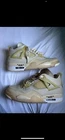 Elevate your sneaker game with these stylish and iconic Jordan Retro 4 Off White sneakers. Designed for women, these athletic shoes feature a ivory colorway with a retro-inspired theme that is perfect for any casual or athletic outfit. The sneakers are a size 11/9.5 men’s and are made from high-quality materials, ensuring durability and comfort during all-day wear. Crafted in collaboration with Off-White, these Air Jordan Retro sneakers are a must-have for any sneakerhead. With the famous Jordan brand and sleek design, these sneakers are sure to turn heads. Perfect for any occasion, these sneakers are a great addition to any wardrobe.