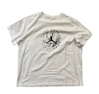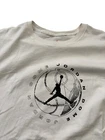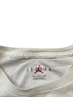 This is a men's Jordan shirt in size 2XL, featuring a graphic print on a white polyester knit fabric. The short sleeve tee has a crew neck and is from the Jordan brand, with a regular fit suitable for all seasons. The shirt has a basketball, retro, and sports theme, ideal for fans of Michael Jordan and basketball.