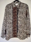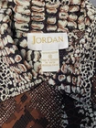Pit to pit 22". Length 27". Elevate your wardrobe with this stylish Jordan women's blouse. Featuring a trendy animal print pattern in brown, tan, and black, this blouse is perfect for any occasion, whether it be travel, casual outings, workwear, or business meetings. The long sleeves and collared neckline provide a classic and sophisticated look, while the material button closure adds a touch of elegance. Made with lightweight and easy-care polyester material, this blouse is perfect for the fall season and is machine washable for your convenience. The classic/fitted sleeve type and regular fit make it comfortable to wear, and the material buttons add a unique touch to the overall design. This blouse is a must-have for any fashion-forward woman and is sure to make a statement wherever you go.