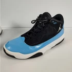 Men's Nike Air Jordan Max Aura 2 'UNC' Shoe Size 9.5 Black White Blue CK6636-041 They have been patched at the top of the lip as shown in pictures other than that it’s in good condition the treads still pretty good as shown as well Has been washed thoroughly before listing Reference photos before purchase