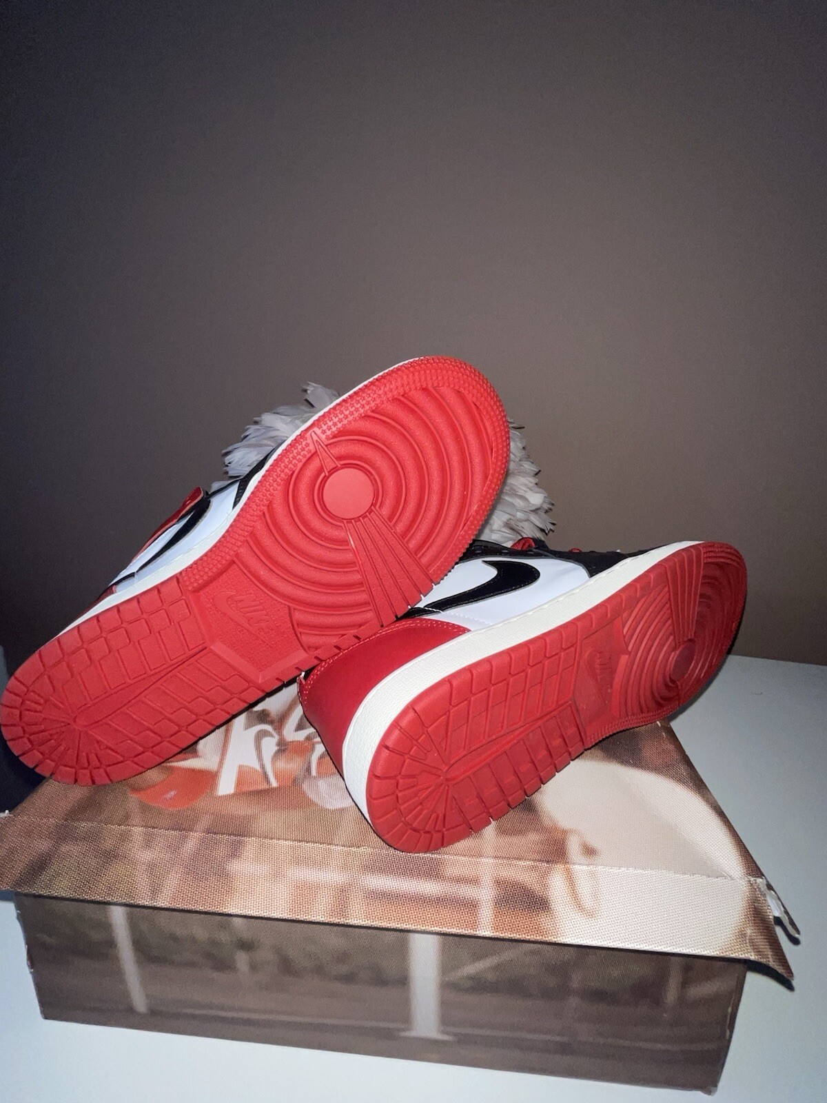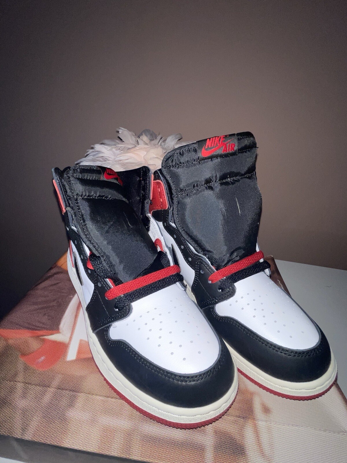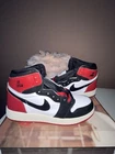 This is a pair of Jordan 1 Retro OG Black Toe Reimagine sneakers in size 7Y. They are designed as athletic sneakers with a leather upper material, featuring the iconic Air Jordan product line. The shoes are in new condition with the original box. Perfect for those who appreciate a classic and stylish sneaker option.
